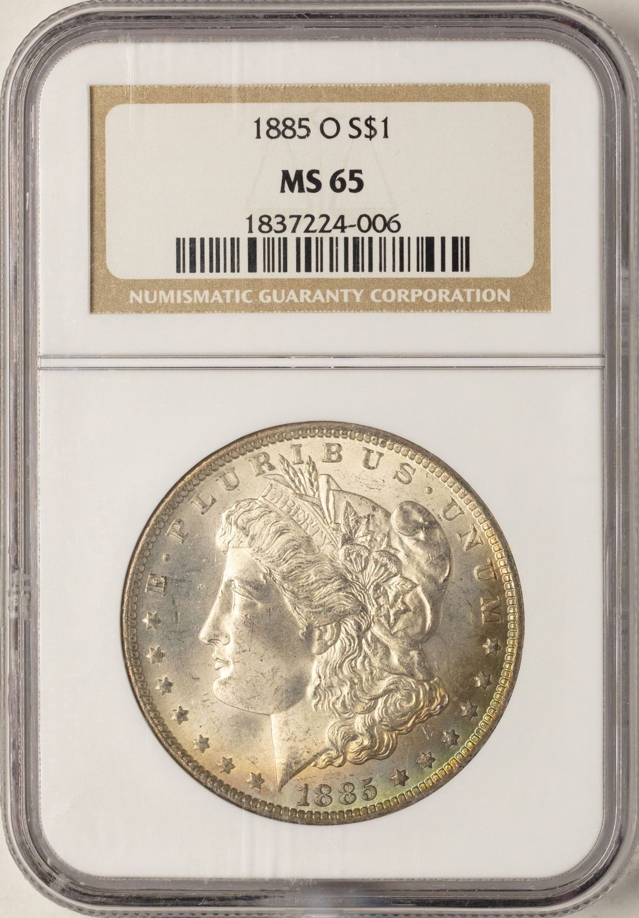One 1885-O $1 Morgan Silver Dollar Coin NGC MS65.