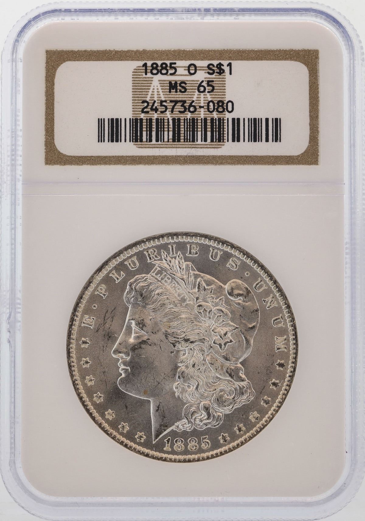 One 1885-O $1 Morgan Silver Dollar Coin NGC MS65.