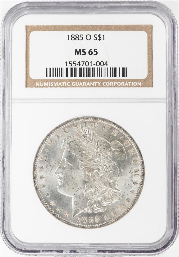 One 1885-O $1 Morgan Silver Dollar Coin NGC MS65. NGC Certified.