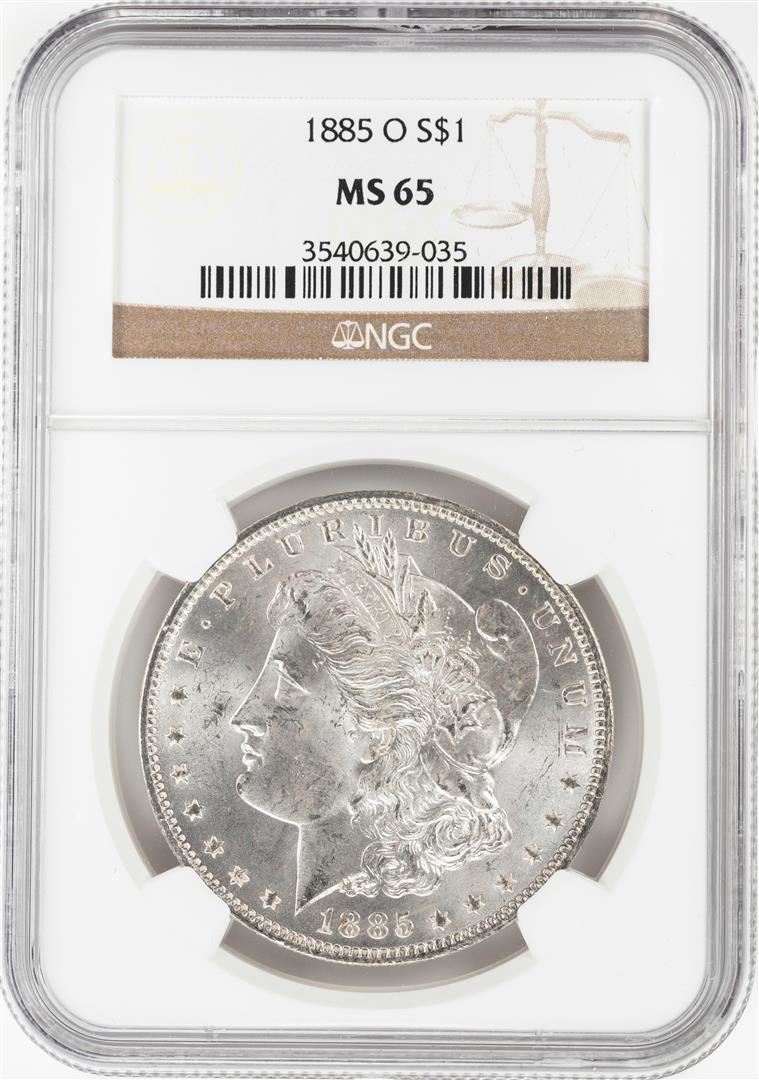 One 1885-O $1 Morgan Silver Dollar Coin NGC MS65. NGC Certified.