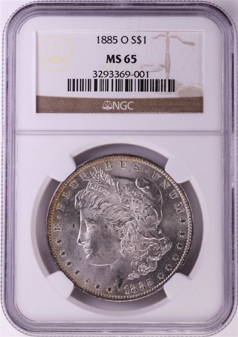 One 1885-O $1 Morgan Silver Dollar Coin NGC MS65.