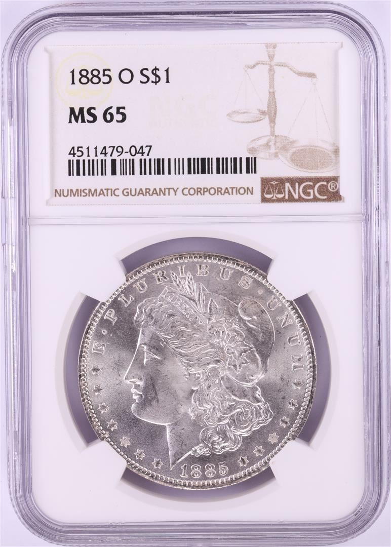 One 1885-O $1 Morgan Silver Dollar Coin NGC MS65. NGC Certified.