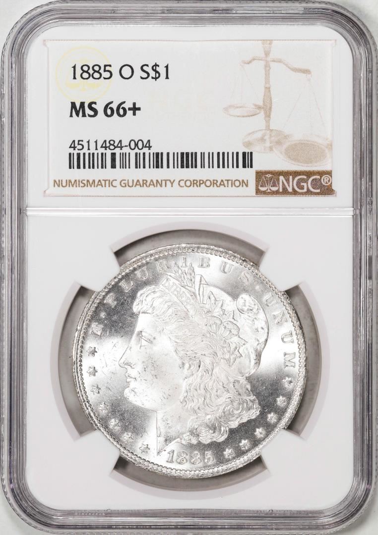 One 1885-O $1 Morgan Silver Dollar Coin NGC MS66+ Plus. NGC Certified.