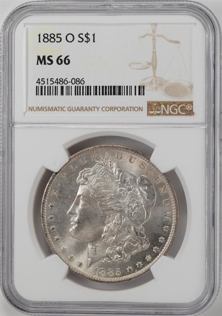 One 1885-O $1 Morgan Silver Dollar Coin NGC MS66. NGC Certified.
