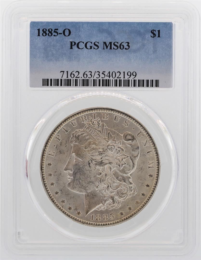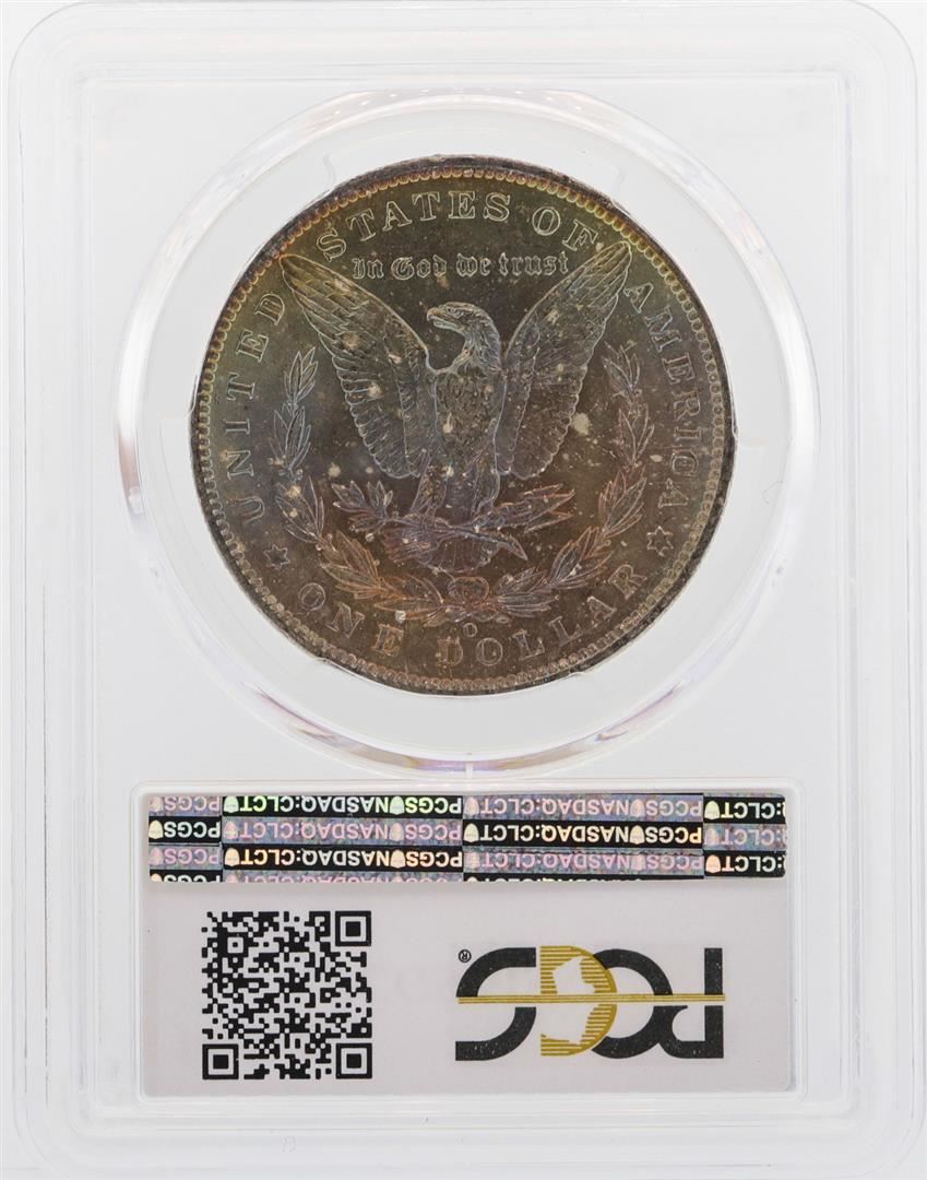 One 1885-O $1 Morgan Silver Dollar Coin PCGS MS63 Amazing Rainbow Toning. PCGS Graded.