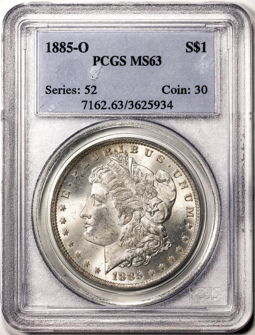 1885-O $1 Morgan Silver Dollar Coin PCGS MS63 Amazing Reverse Toning