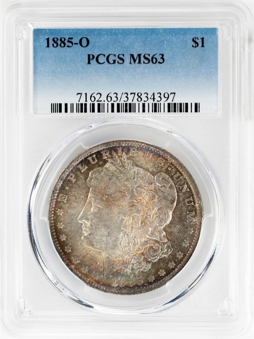 One 1885-O $1 Morgan Silver Dollar Coin PCGS MS63 Amazing Toning. PCGS Graded.