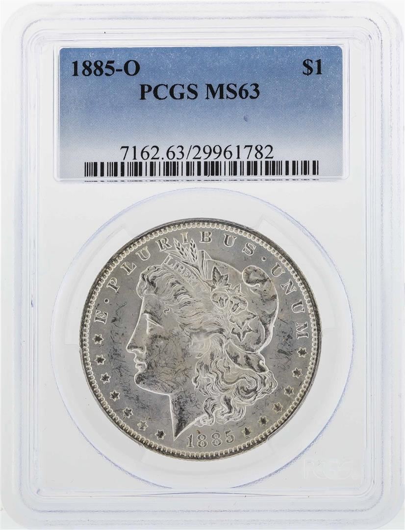 One 1885-O $1 Morgan Silver Dollar Coin PCGS MS63. PCGS Graded.