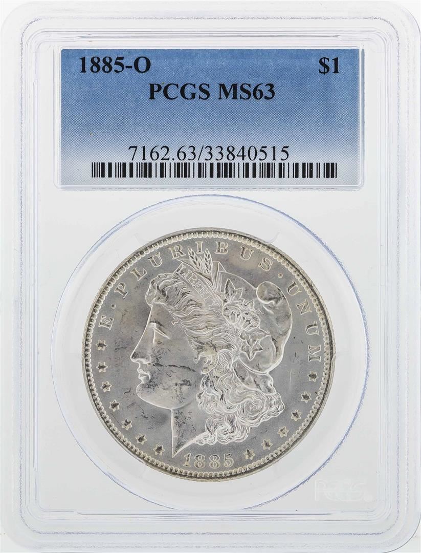 One 1885-O $1 Morgan Silver Dollar Coin PCGS MS63. PCGS Certified.