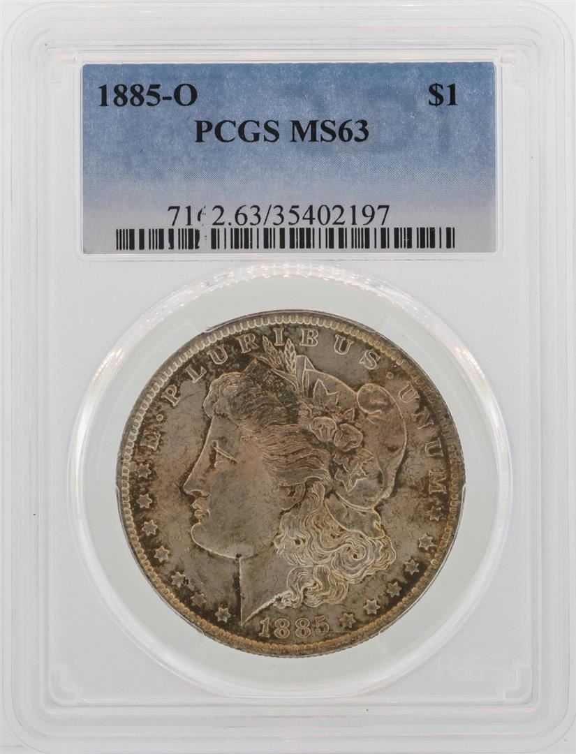 One 1885-O $1 Morgan Silver Dollar Coin PCGS MS63. PCGS Certified.