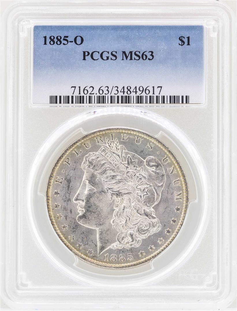 One 1885-O $1 Morgan Silver Dollar Coin PCGS MS63. PCGS Graded.