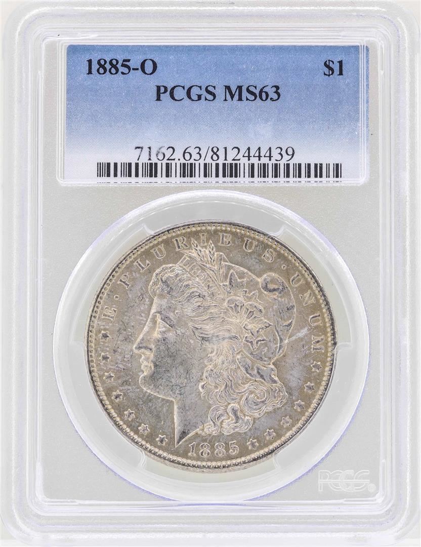 One 1885-O $1 Morgan Silver Dollar Coin PCGS MS63. PCGS Certified.