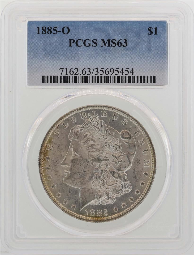 One 1885-O $1 Morgan Silver Dollar Coin PCGS MS63. PCGS Certified.