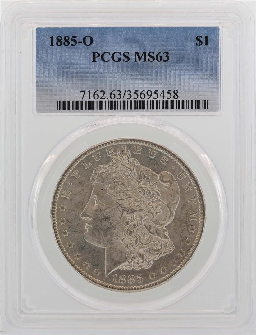 One 1885-O $1 Morgan Silver Dollar Coin PCGS MS63. PCGS Certified.