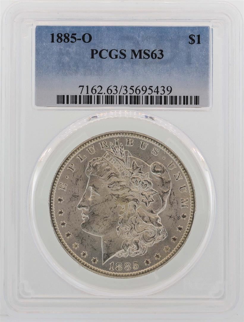 One 1885-O $1 Morgan Silver Dollar Coin PCGS MS63. PCGS Certified.