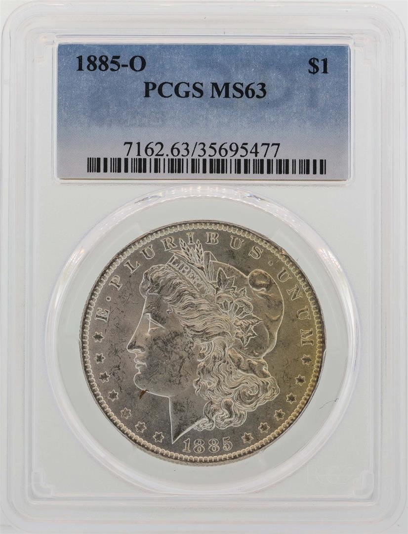 One 1885-O $1 Morgan Silver Dollar Coin PCGS MS63. PCGS Graded.