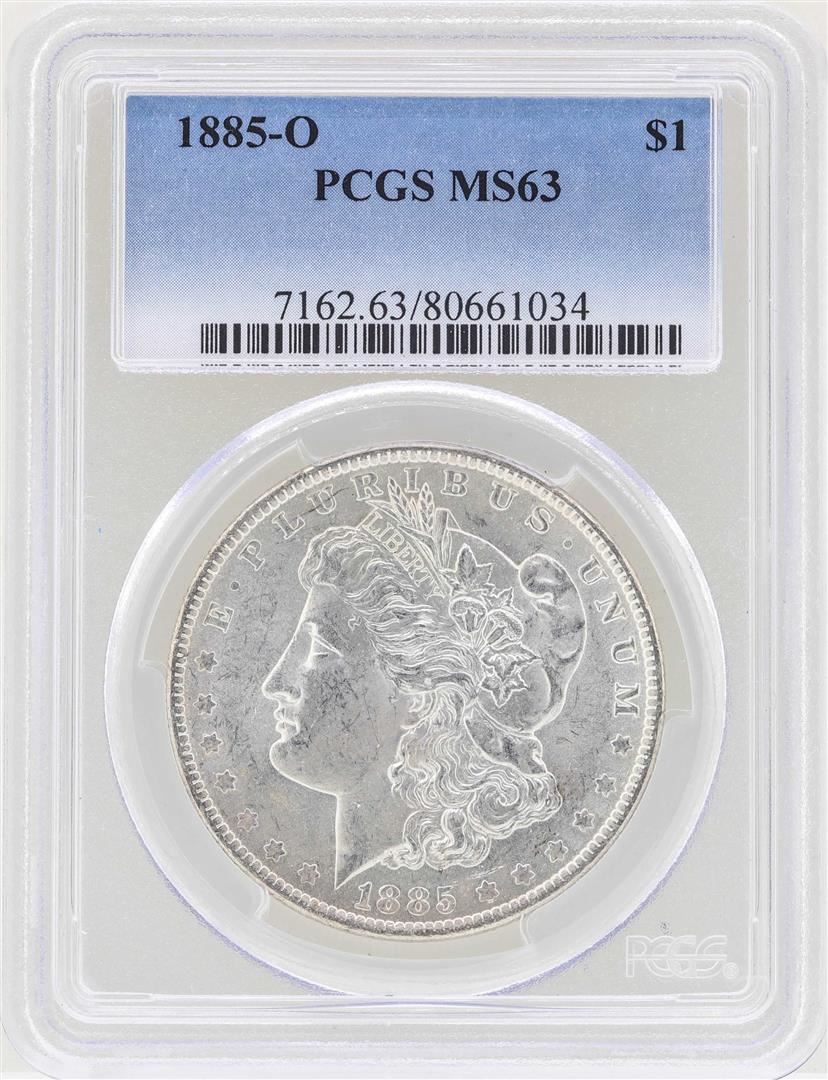 One 1885-O $1 Morgan Silver Dollar Coin PCGS MS63. PCGS Certified.