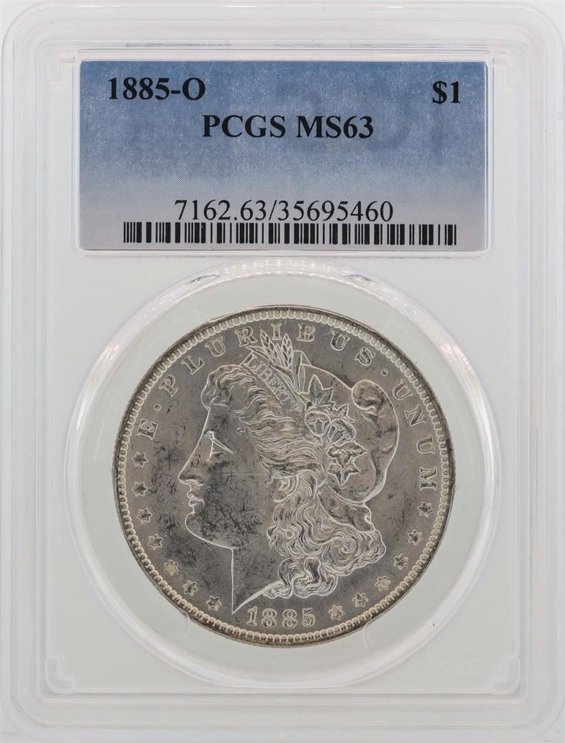 One 1885-O $1 Morgan Silver Dollar Coin PCGS MS63. PCGS Certified.
