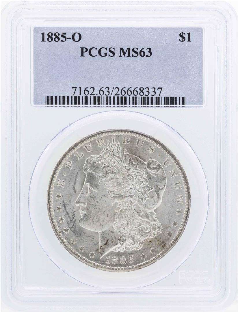 One 1885-O $1 Morgan Silver Dollar Coin PCGS MS63. PCGS Certified.