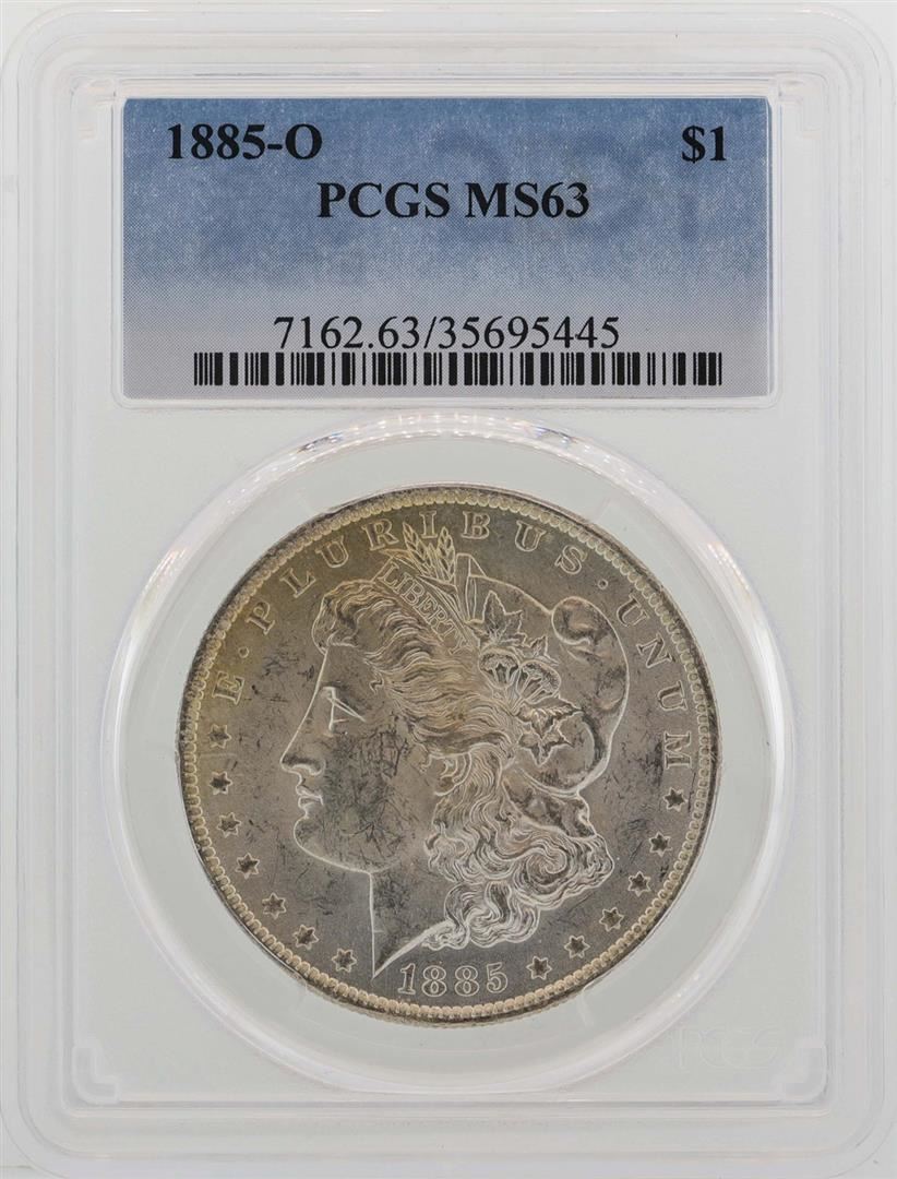 One 1885-O $1 Morgan Silver Dollar Coin PCGS MS63. PCGS Graded.