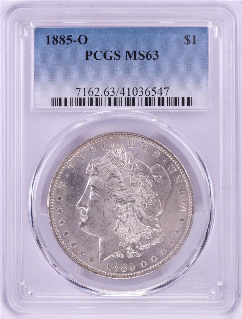 One 1885-O $1 Morgan Silver Dollar Coin PCGS MS63. PCGS Graded.