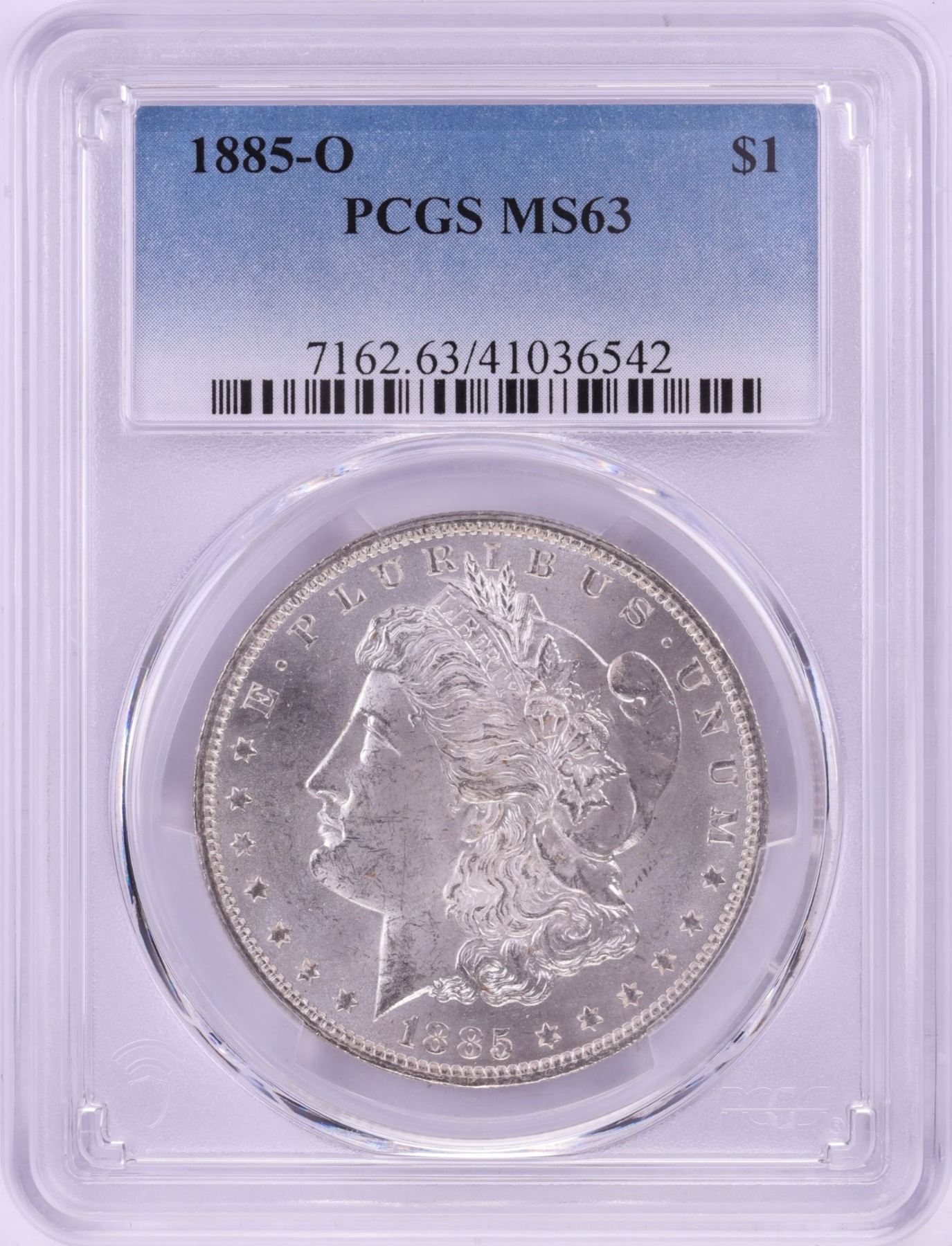 One 1885-O $1 Morgan Silver Dollar Coin PCGS MS63.