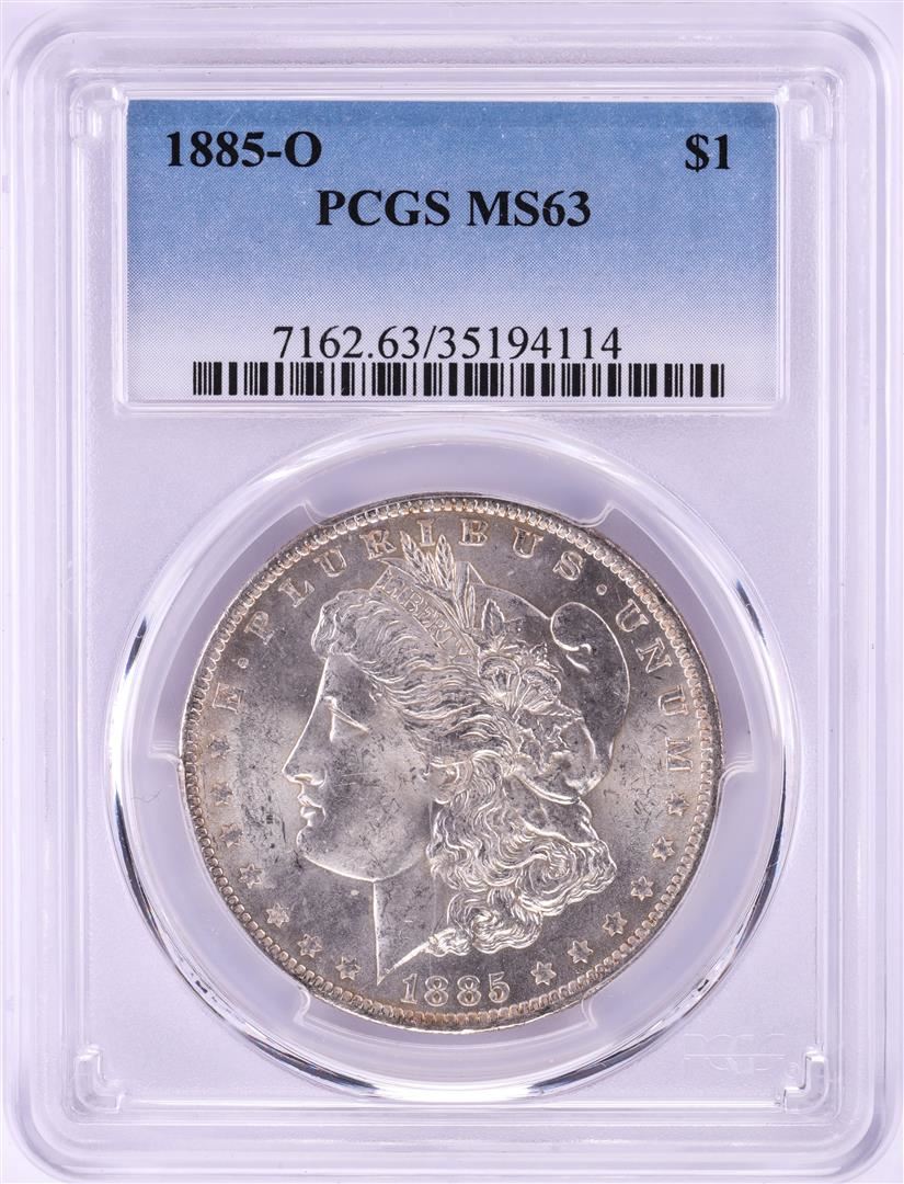 One 1885-O $1 Morgan Silver Dollar Coin PCGS MS63. PCGS Graded.