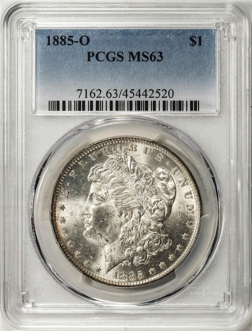 One 1885-O $1 Morgan Silver Dollar Coin PCGS MS63. PCGS Graded.