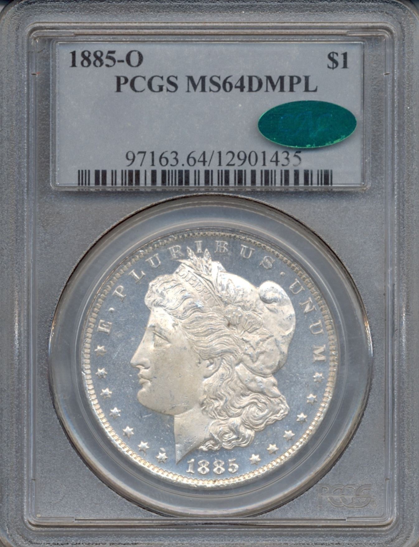 One 1885-O $1 Morgan Silver Dollar Coin PCGS MS64DMPL CAC.