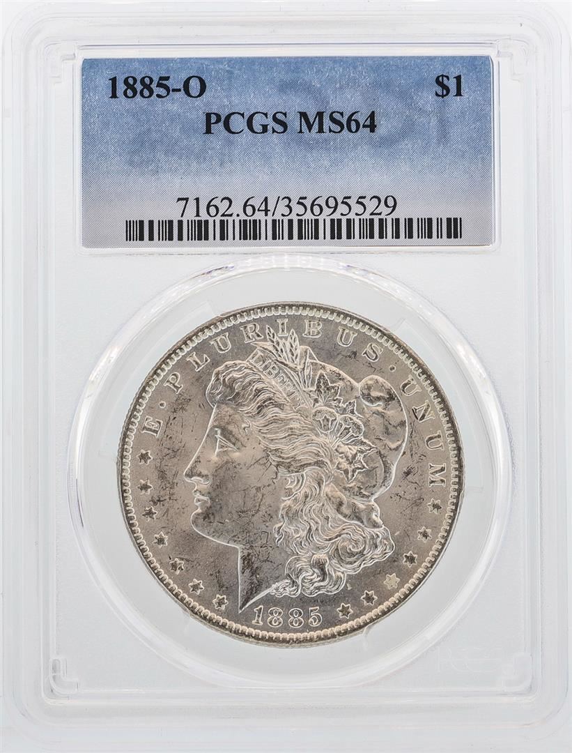 One 1885-O $1 Morgan Silver Dollar Coin PCGS MS64. PCGS Graded.