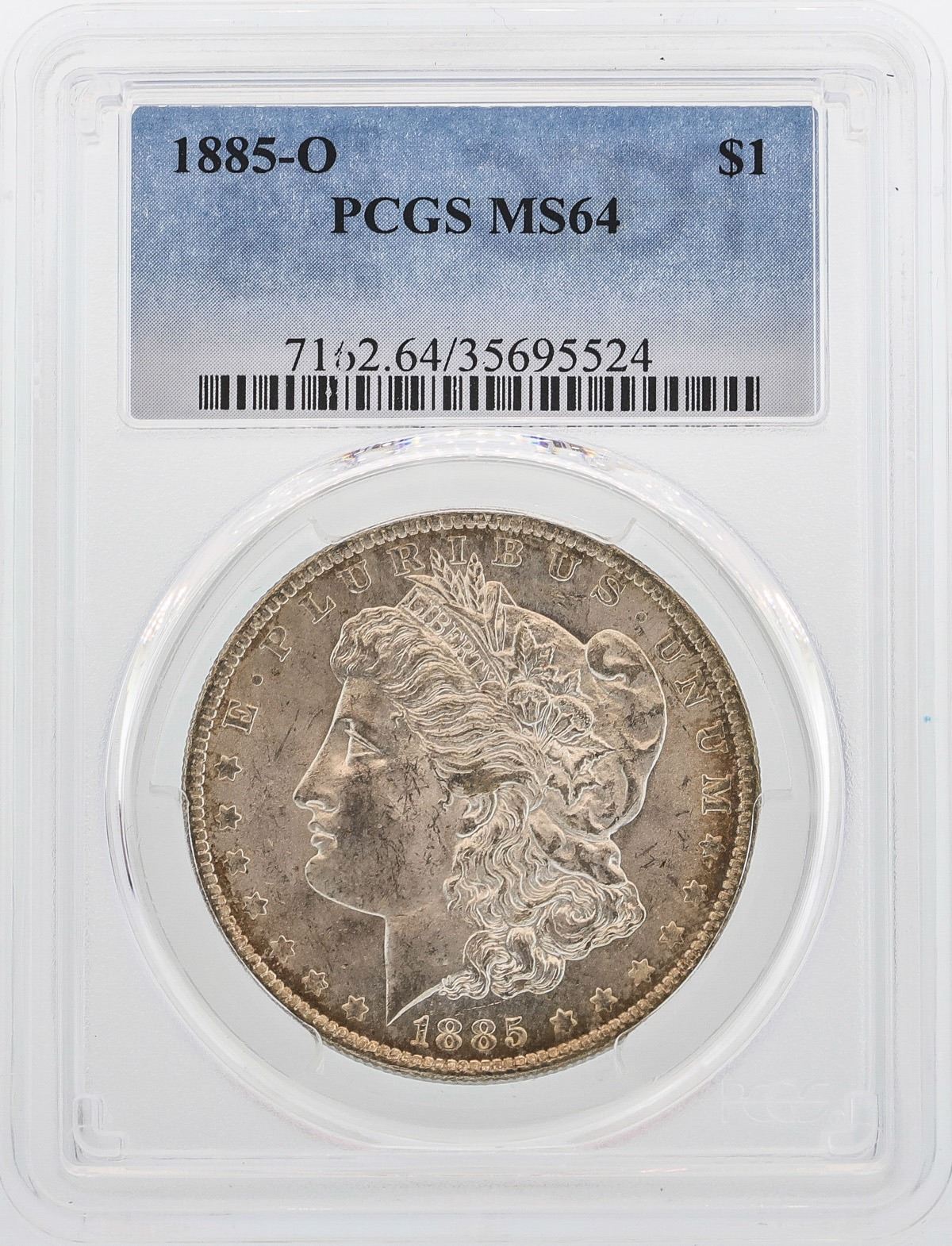 One 1885-O $1 Morgan Silver Dollar Coin PCGS MS64.