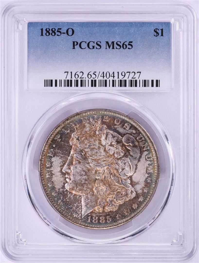 One 1885-O $1 Morgan Silver Dollar Coin PCGS MS65 Great Toning/Color. PCGS Graded.