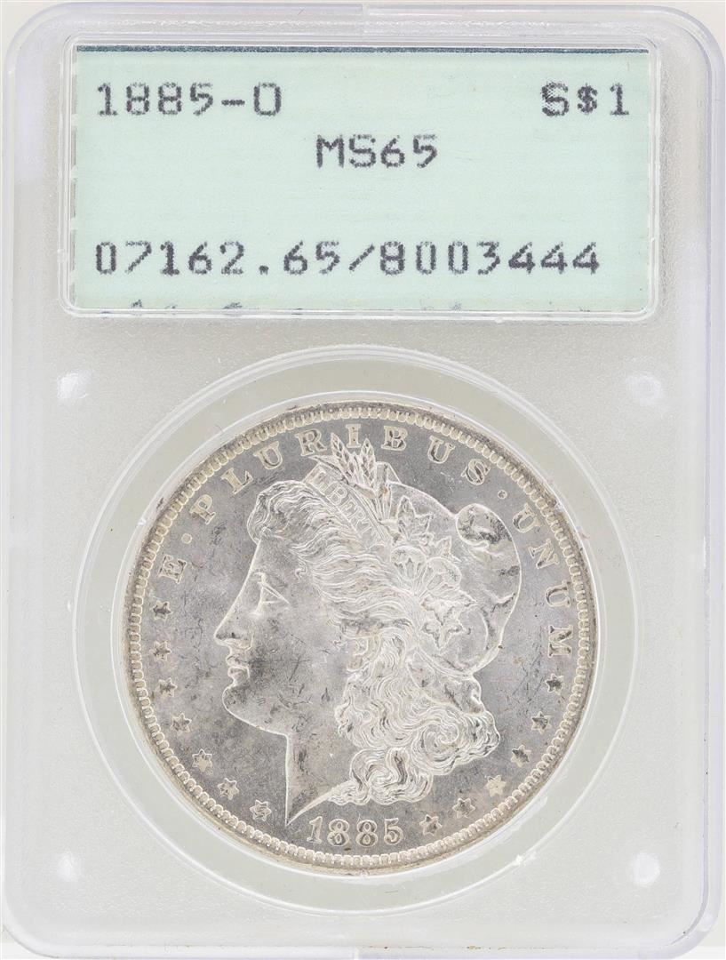 One 1885-O $1 Morgan Silver Dollar Coin PCGS MS65. PCGS Graded.