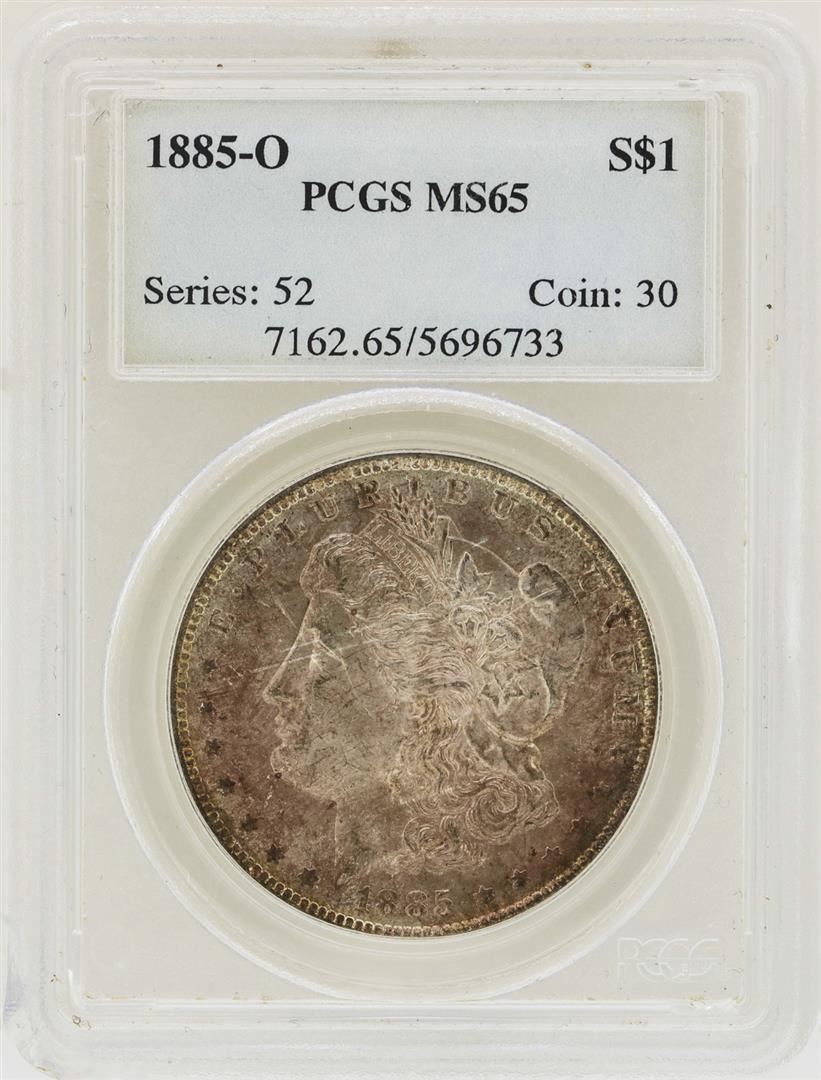 One 1885-O $1 Morgan Silver Dollar Coin PCGS MS65. PCGS Graded.