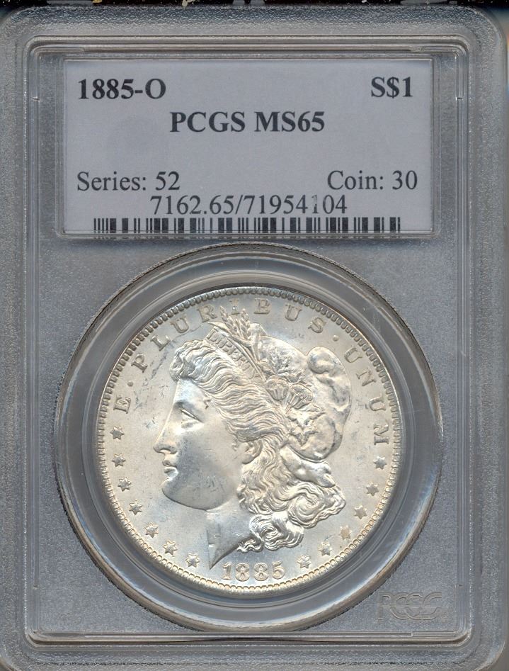One 1885-O $1 Morgan Silver Dollar Coin PCGS MS65.