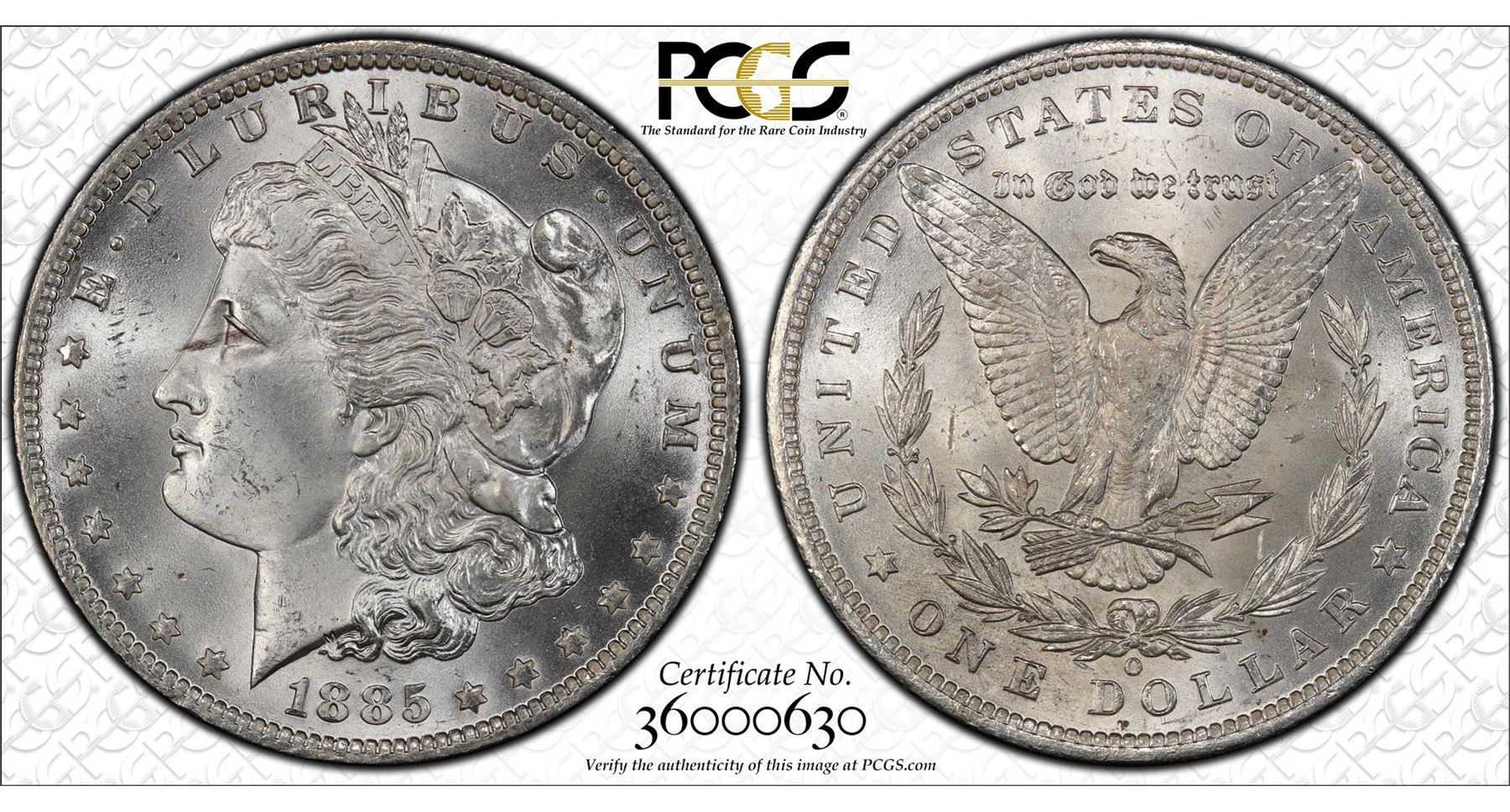 One 1885-O $1 Morgan Silver Dollar Coin PCGS MS65. PCGS Graded.