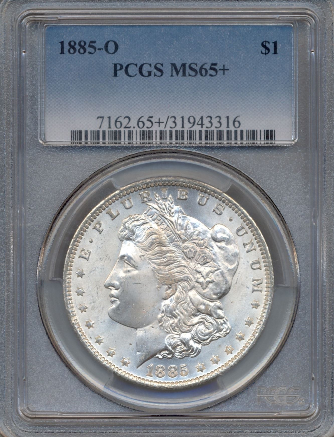 One 1885-O $1 Morgan Silver Dollar Coin PCGS MS65+.