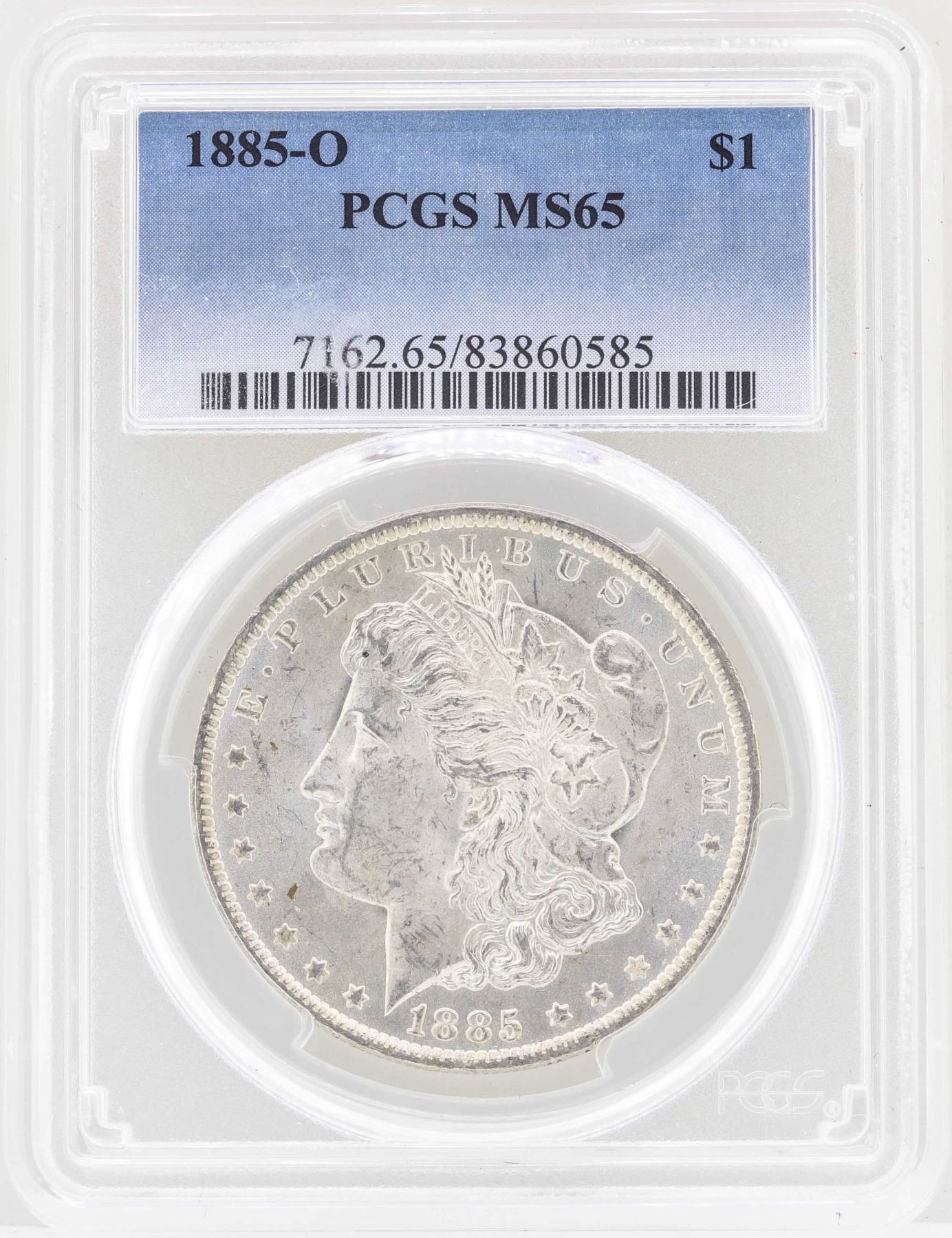 One 1885-O $1 Morgan Silver Dollar Coin PCGS MS65.