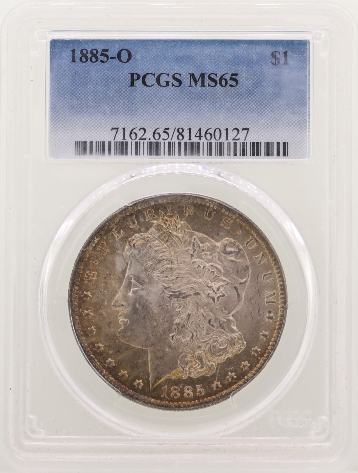 One 1885-O $1 Morgan Silver Dollar Coin PCGS MS65.