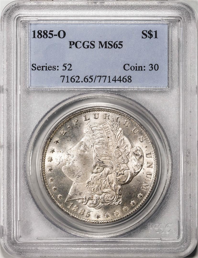 One 1885-O $1 Morgan Silver Dollar Coin PCGS MS65. PCGS Graded.