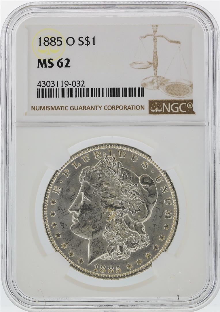 One 1885-O $1 Morgan Silver Dollar NGC Graded MS62. NGC Certified.