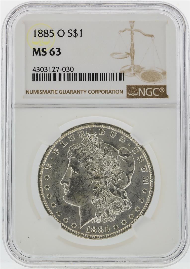One 1885-O $1 Morgan Silver Dollar NGC Graded MS63. NGC Certified.