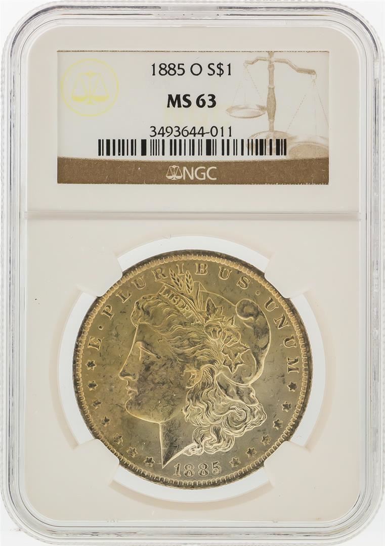 One 1885-O $1 Morgan Silver Dollar NGC Graded MS63. NGC Certified.