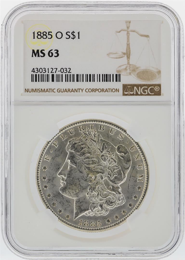 One 1885-O $1 Morgan Silver Dollar NGC Graded MS63. NGC Certified.