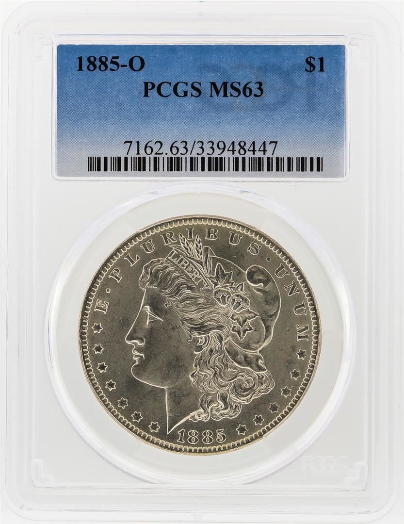 One 1885-O $1 Morgan Silver Dollar PCGS Graded MS63. PCGS Graded.