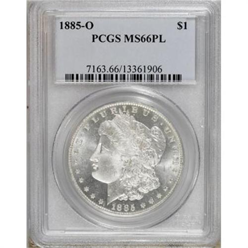 <B>1885-O $1 MS66 Prooflike PCGS.</B></I> PCGS Population (26/1). NGC Census: (26/4). Numismedia Wsl. Price for NGC/PCGS coin in MS66: $400. (#7163)<BR><BR><B>Coin Engraver:</B> George T. Morgan<BR><BR><b>Shipping:</b> Coins & Currency (<a target="_blank" href="http://www.heritageauctions.com/common/shipping.php">view shipping information</a>)