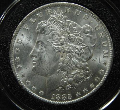1885-O U.S. MORGAN SILVER DOLLAR. Coin is in circular case.