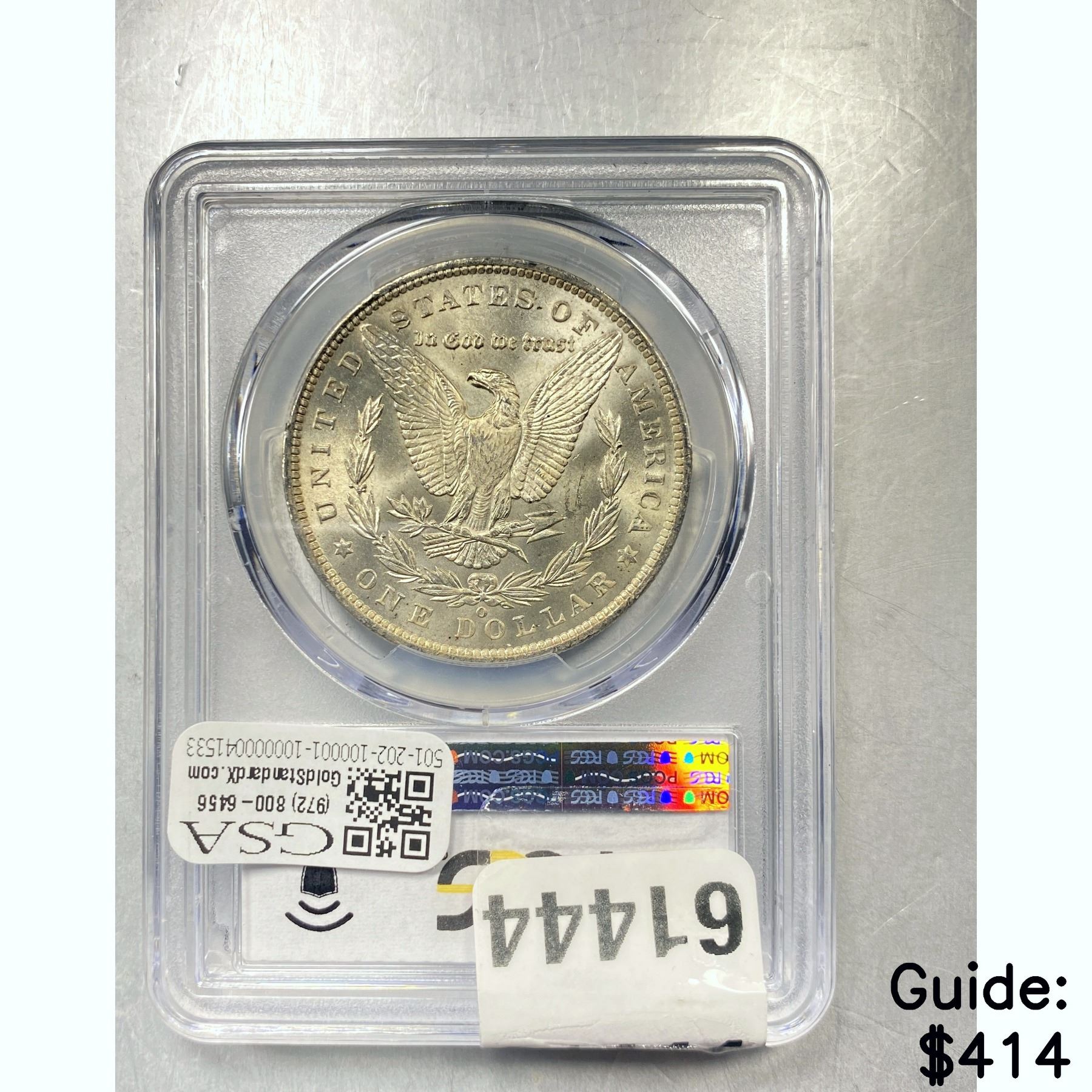 e. Coins sold referencing a third-party grading service are sold “AS IS” without any express or implied warranty, except for a guarantee by GSA that they are genuine. Removal or alteration of the holder, voids all of Bidder’s claims concerning that Product. Certain warranties may be available from the grading services and Bidders are referred to them for further details: Numismatic Guaranty Corporation (NGC), PO Box 4776, Sarasota, FL 34230, www.ngccoin.com/services/writtenguarantee.asp; Professional Coin Grading Services (PCGS), PO Box 9458, Newport Beach, CA 92658, www.pcgs.com/guarantee.html; ANACS, 6555 S. Kenton St., Ste. 303, Englewood, CO 80111; and Independent Coin Grading Co. (ICG), 7901 East Bellview, Ave., Suite 50, Englewood, CO 80111.