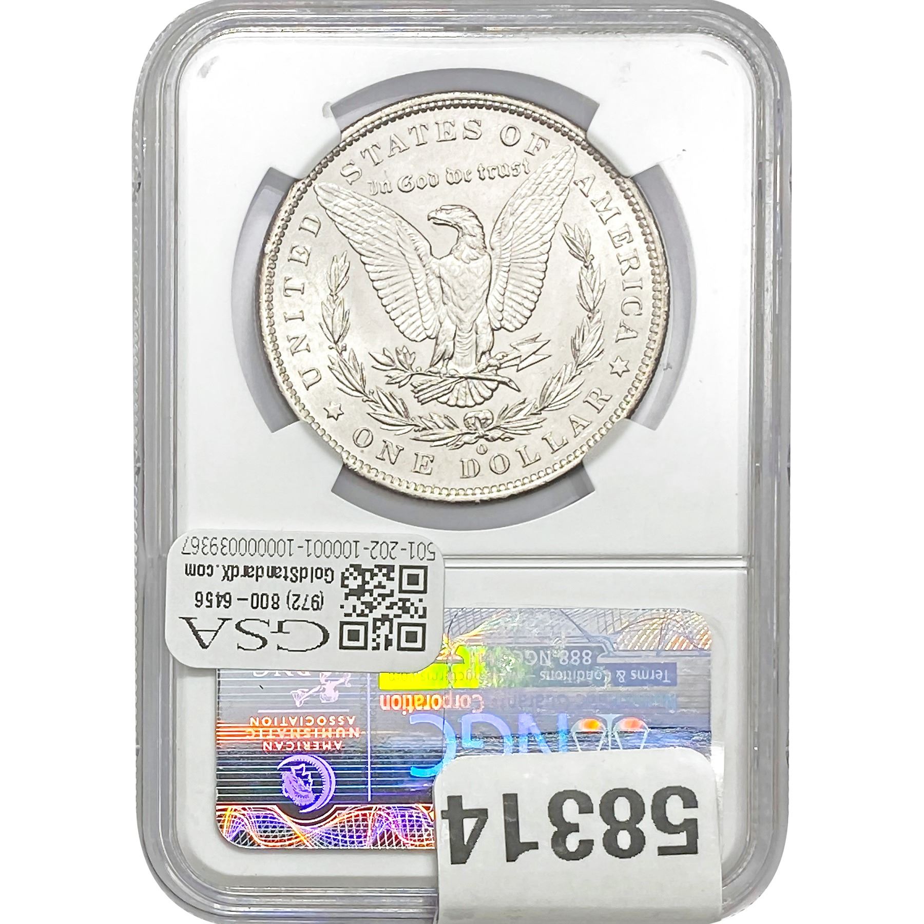 e. Coins sold referencing a third-party grading service are sold “AS IS” without any express or implied warranty, except for a guarantee by GSA that they are genuine. Removal or alteration of the holder, voids all of Bidder’s claims concerning that Product. Certain warranties may be available from the grading services and Bidders are referred to them for further details: Numismatic Guaranty Corporation (NGC), PO Box 4776, Sarasota, FL 34230, www.ngccoin.com/services/writtenguarantee.asp; Professional Coin Grading Services (PCGS), PO Box 9458, Newport Beach, CA 92658, www.pcgs.com/guarantee.html; ANACS, 6555 S. Kenton St., Ste. 303, Englewood, CO 80111; and Independent Coin Grading Co. (ICG), 7901 East Bellview, Ave., Suite 50, Englewood, CO 80111.