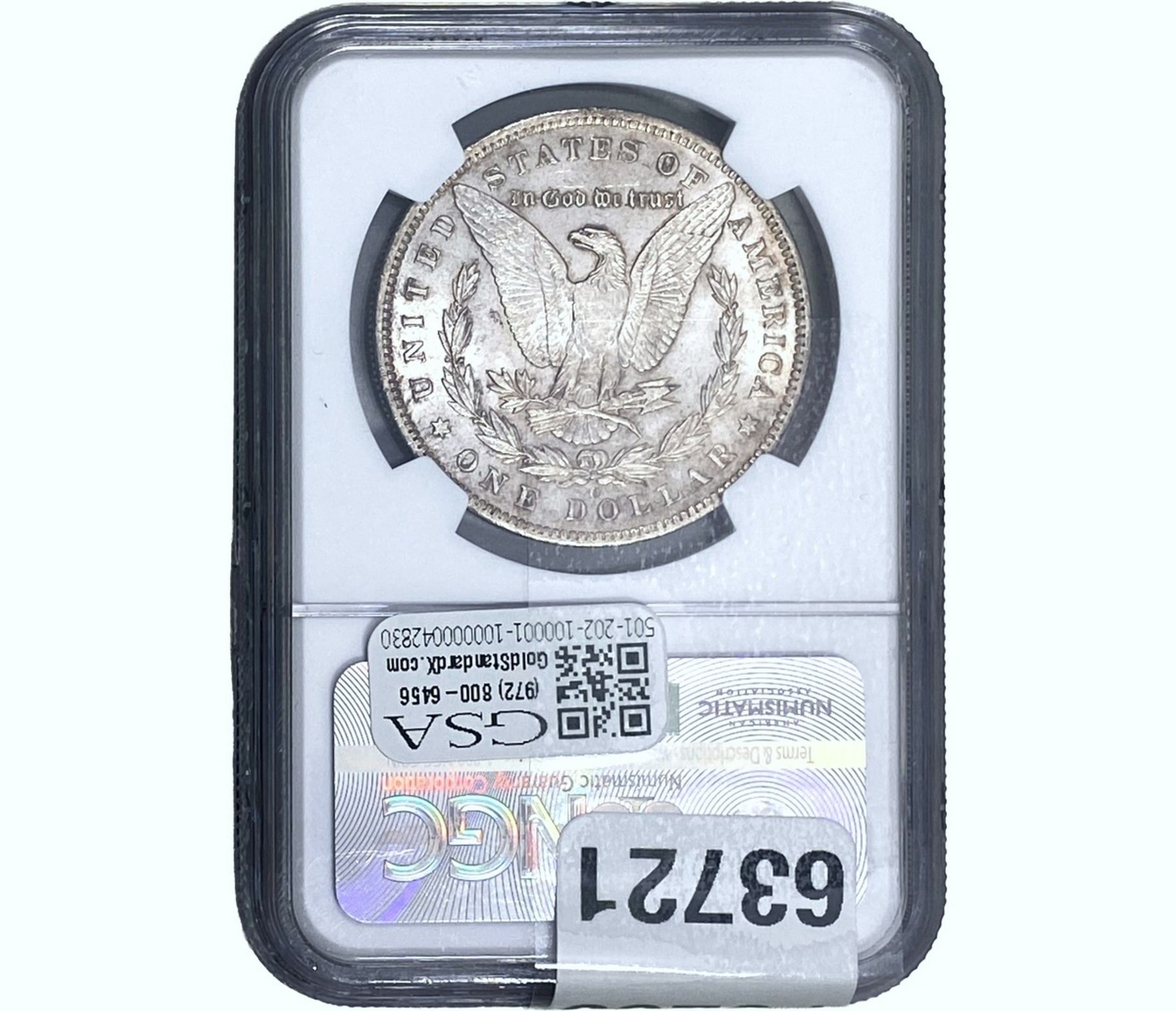 e. Coins sold referencing a third-party grading service are sold “AS IS” without any express or implied warranty, except for a guarantee by GSA that they are genuine. Removal or alteration of the holder, voids all of Bidder’s claims concerning that Product. Certain warranties may be available from the grading services and Bidders are referred to them for further details: Numismatic Guaranty Corporation (NGC), PO Box 4776, Sarasota, FL 34230, www.ngccoin.com/services/writtenguarantee.asp; Professional Coin Grading Services (PCGS), PO Box 9458, Newport Beach, CA 92658, www.pcgs.com/guarantee.html; ANACS, 6555 S. Kenton St., Ste. 303, Englewood, CO 80111; and Independent Coin Grading Co. (ICG), 7901 East Bellview, Ave., Suite 50, Englewood, CO 80111.
